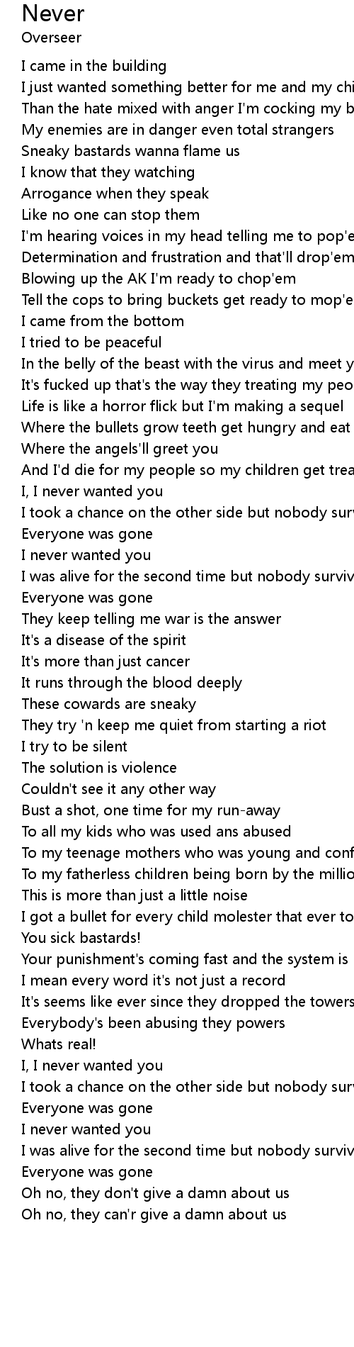 | I mean every word it's not just a record | |