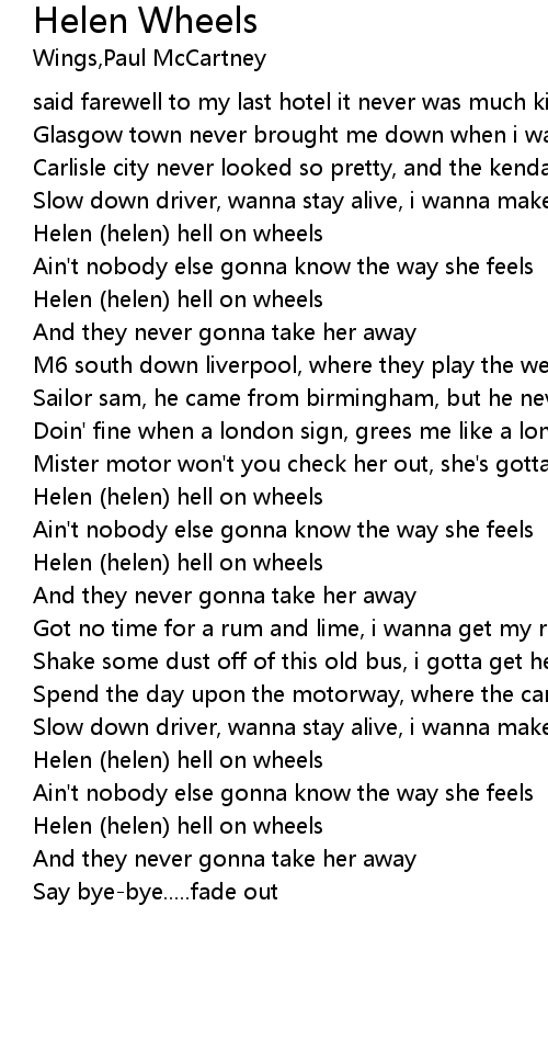 Helen (helen) hell on wheels |