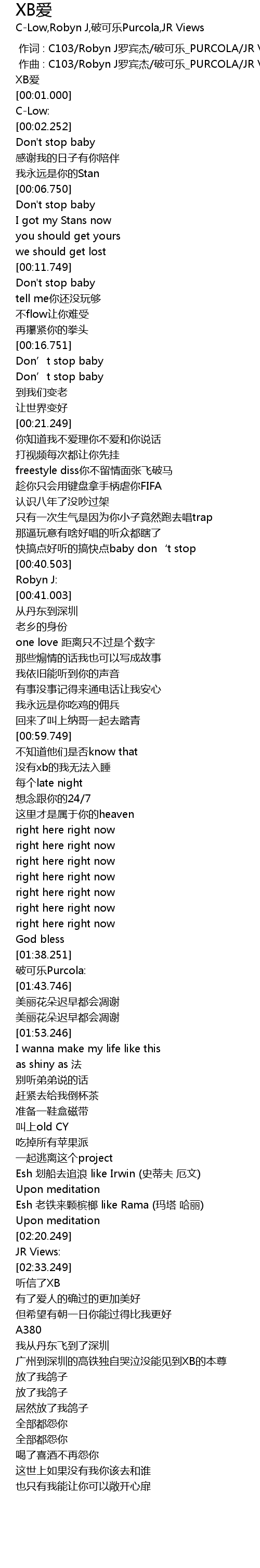 | [00:00.252] | 作曲 : C103/Robyn J罗宾杰/破可乐_PURCOLA/JR Views |