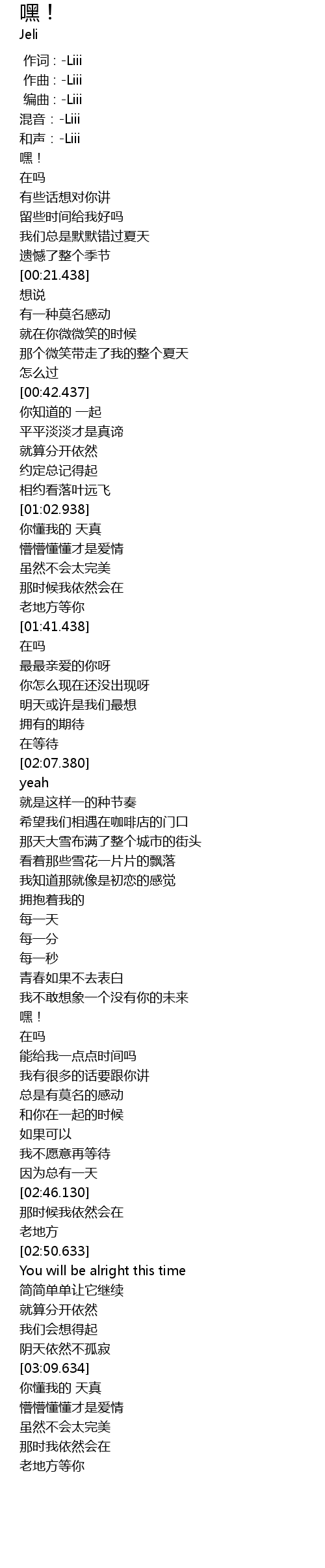 | [00:00.296] | 编曲 : -Liii |