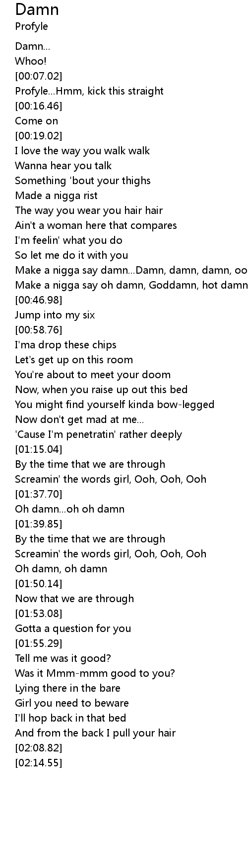 [00:38.06] Make a nigga say damn...Damn, damn, damn, ooh