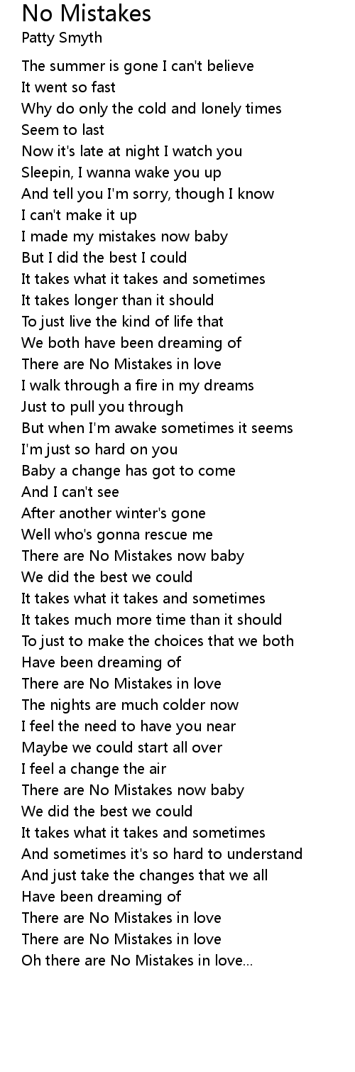 There are No Mistakes now baby |