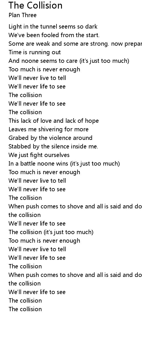 When push comes to shove and all is said and done we'll get what we deserve in the collision