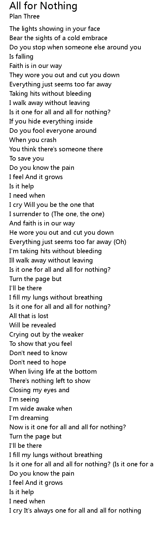 I cry It's always one for all and all for nothing |