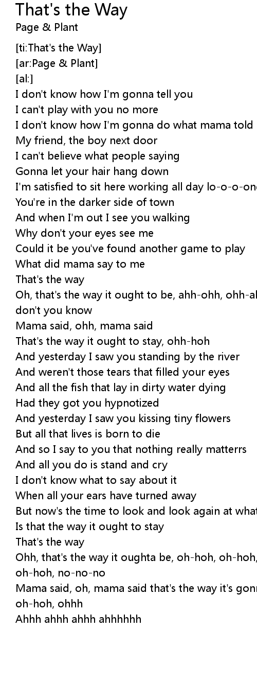 Mama said, oh, mama said that's the way it's gonna stay, oh-hoh, oh-hoh, ohhh |