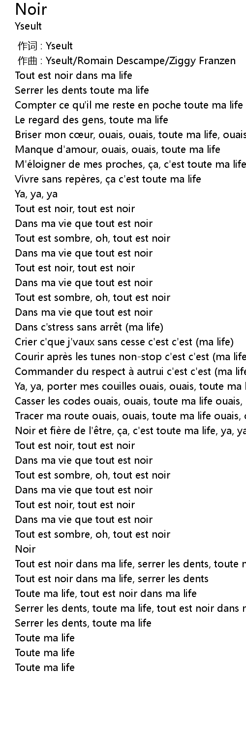 | [02:16.32] | Toute ma life, tout est noir dans ma life |