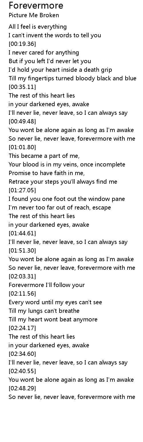 So never lie, never leave, forevermore with me |