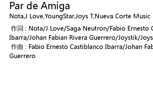 | [00:00.00-1] | zuò cí : Nota J Love Saga Neutron Fabio Ernesto Castiblanco Ibarra Johan Fabian Rivera Guerrero Joystik Joys T Nueva Corte Music |