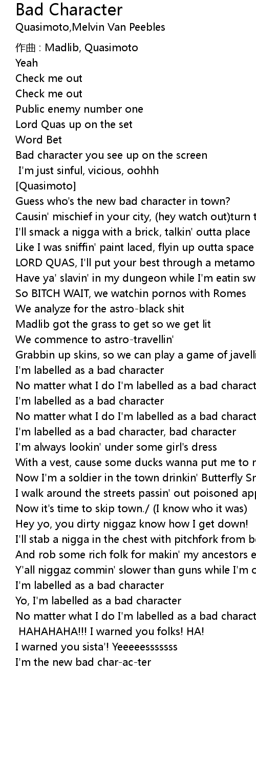| Yo, I'm labelled as a bad character | |
