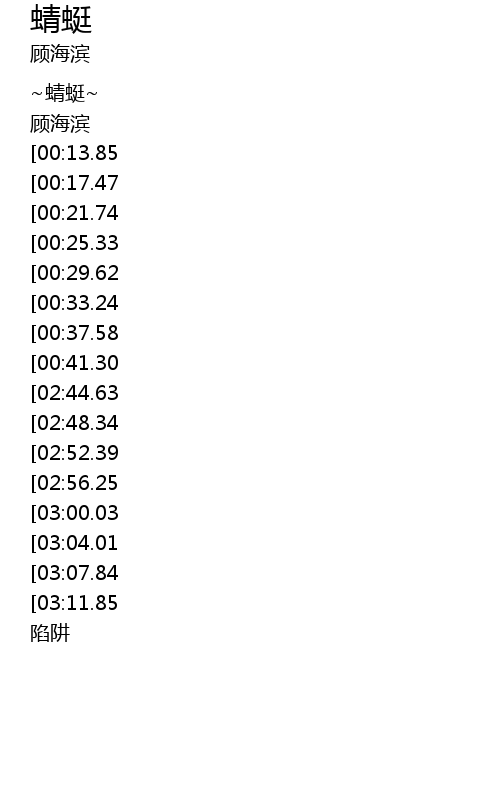 | [01:57.63][00:29.62] | 蜻蜓翅膀透明 |