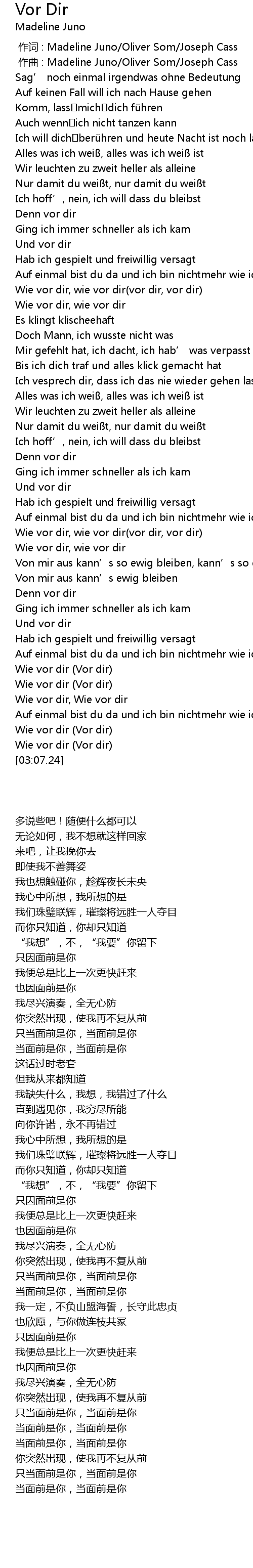 | [03:01.82] | Wie vor dir (Vor dir) |