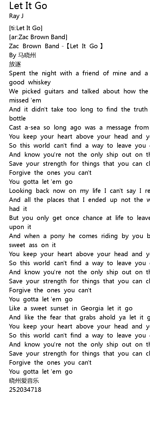 | [00:00.520] | Zac Brown Band -【Let It Go 】 |