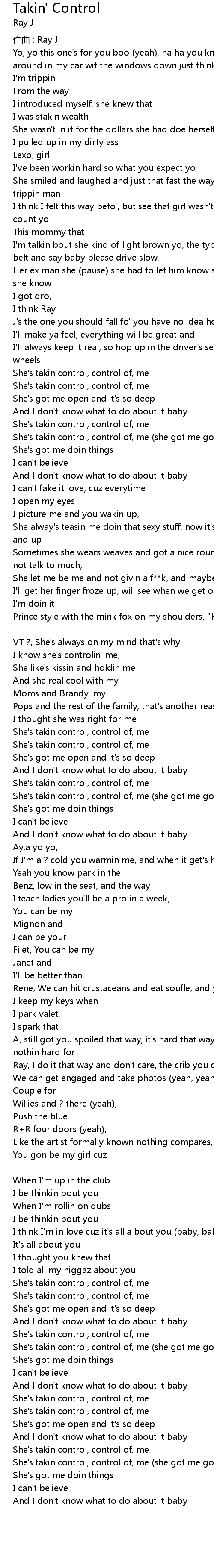 | 歌曲 | Takin' Control |