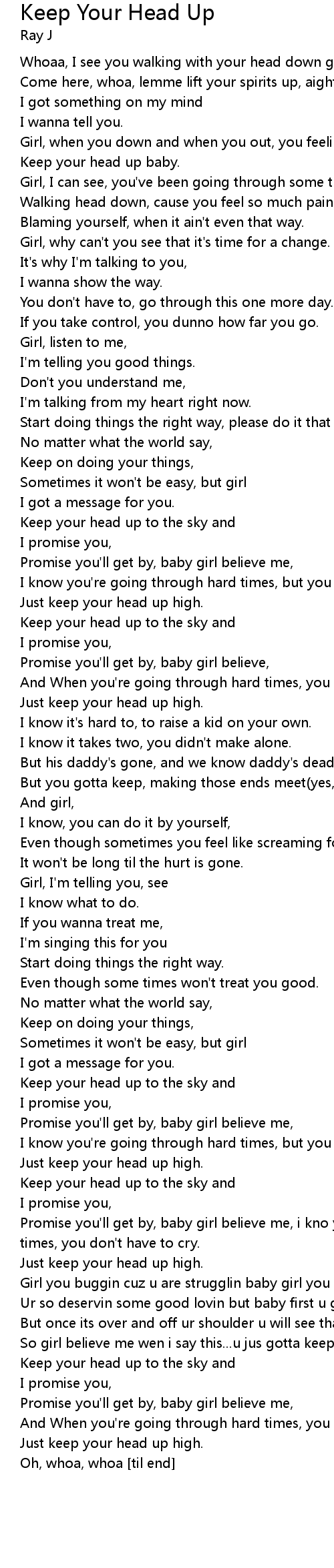 Promise you'll get by, baby girl believe me, i kno you're going through hard times, you don't have to cry. |