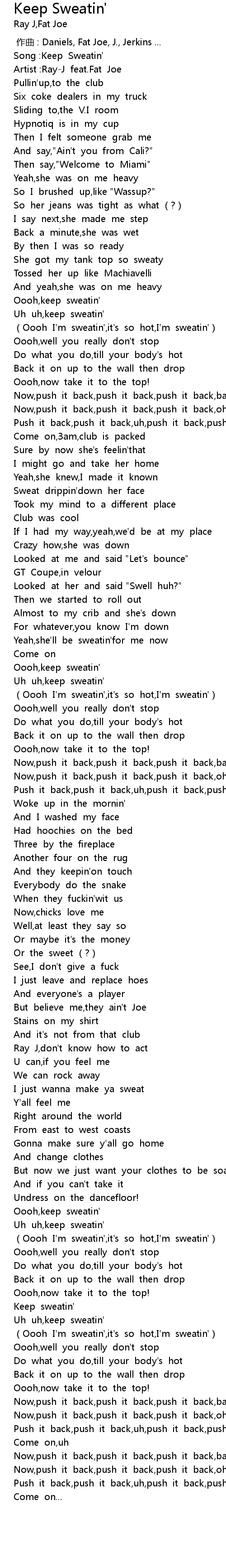 | [03:04.257] | Oooh I' m sweatin', it' s so hot, I' m sweatin' |