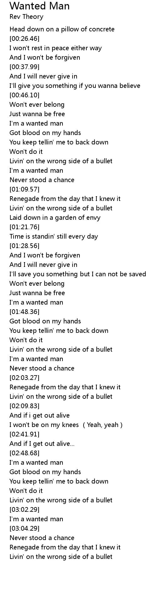 | [03:02.98] | I'm a wanted man |