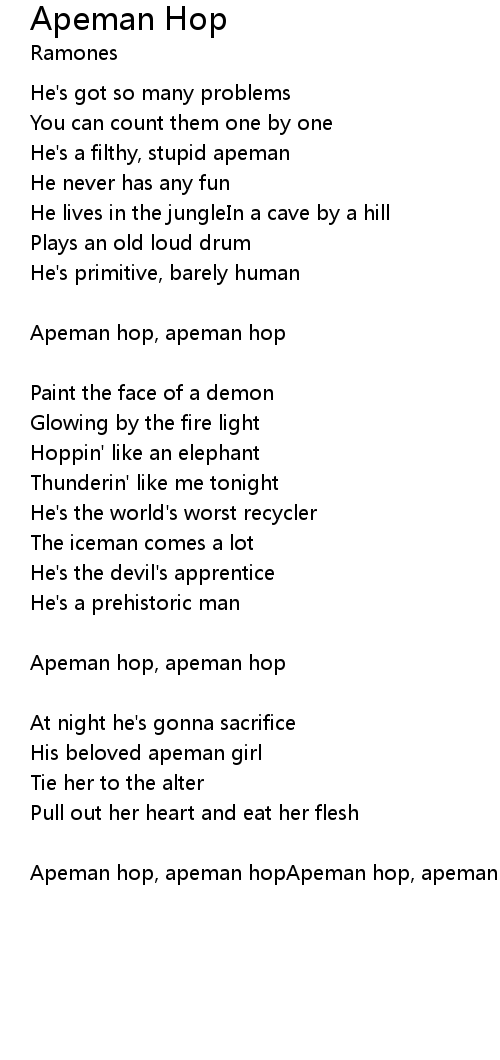 | Apeman hop, apeman hopApeman hop, apeman hop, apemen |