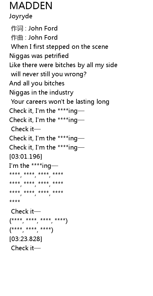 | [02:45.366] | Check it, I'm the ****ing— |