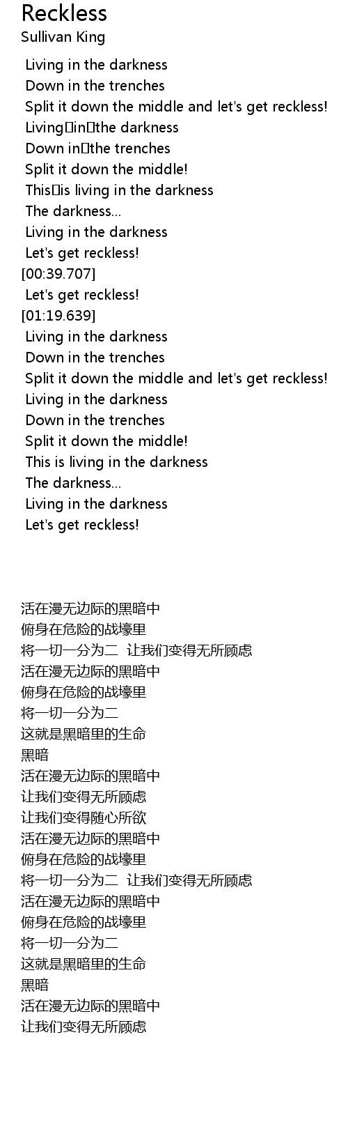| [00:16.579] | Split it down the middle and let's get reckless! |