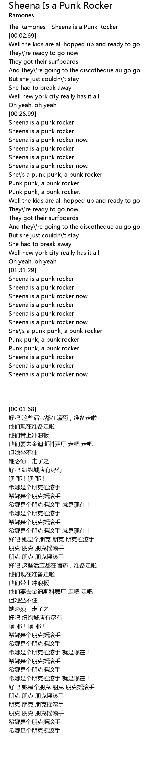 Sheena is a punk rocker |