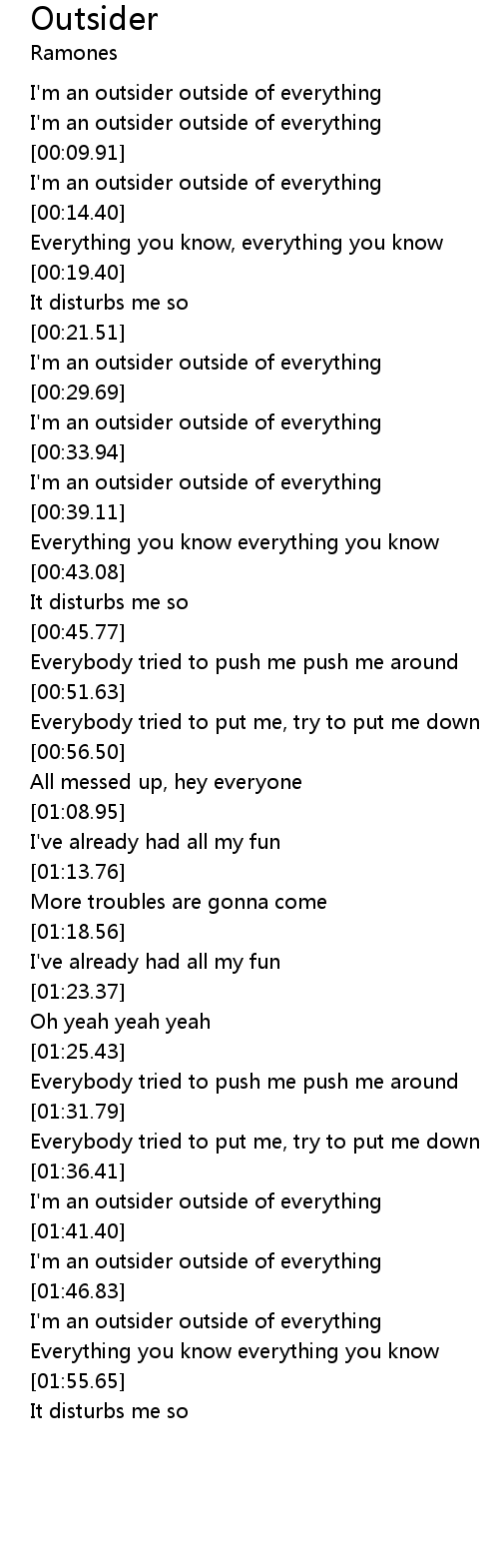 [00:00.99] I'm an outsider outside of everything