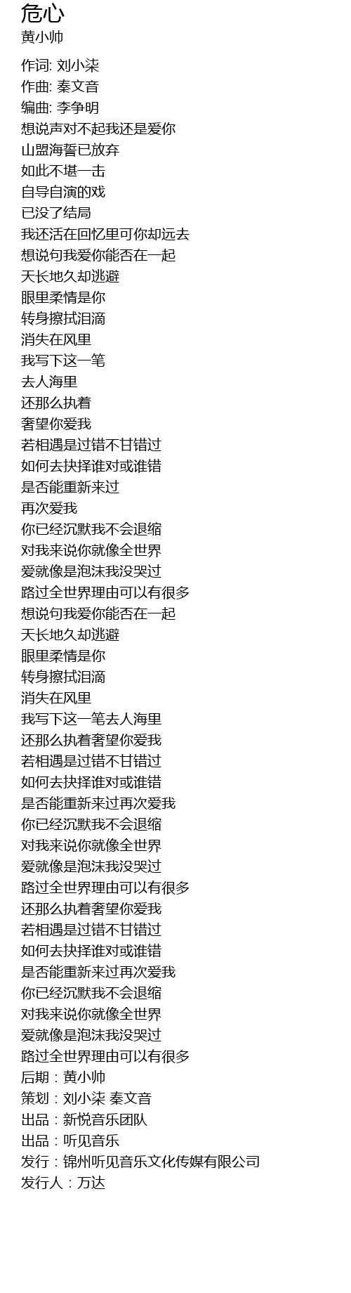 | [04:34.89] | 发行:锦州听见音乐文化传媒有限公司 |