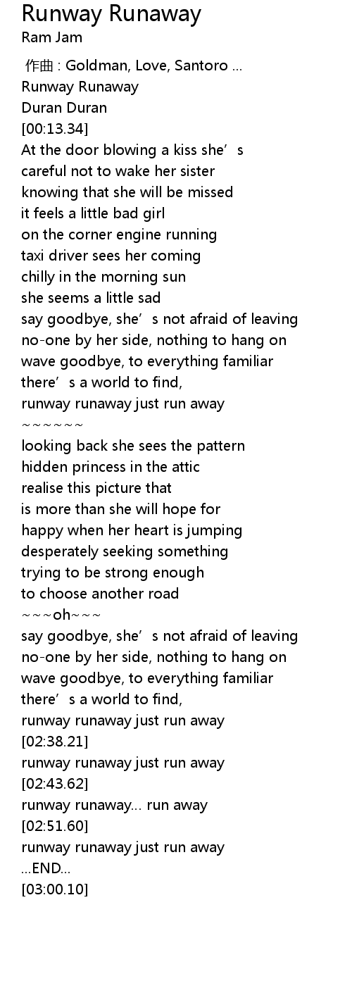 | [02:53.33] | runway runaway just run away |