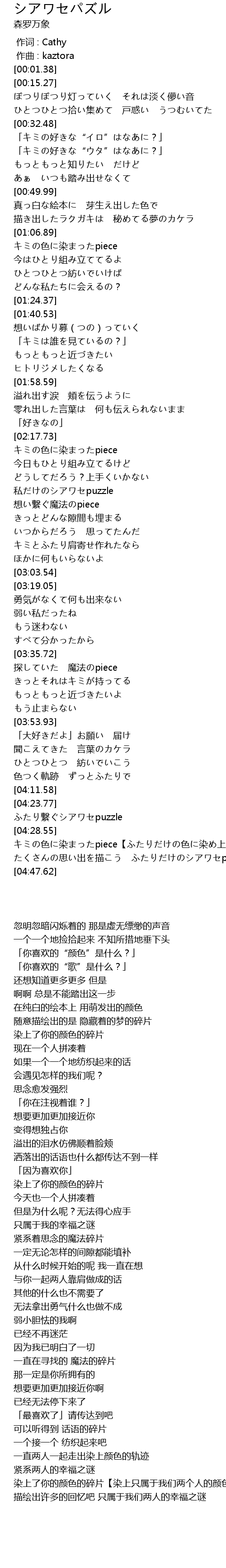 | [04:37.30] | たくさんの思い出を描こう ふたりだけのシアワセpuzzle |