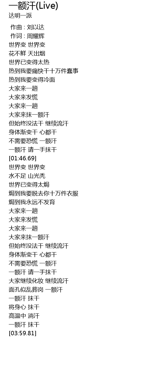 | [03:53.92] | 一额汗 抹干 |