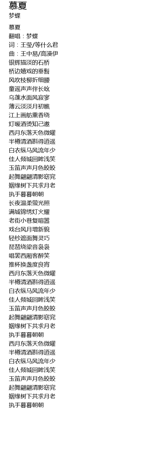 | [00:05.21] | 翻唱:梦蝶 |