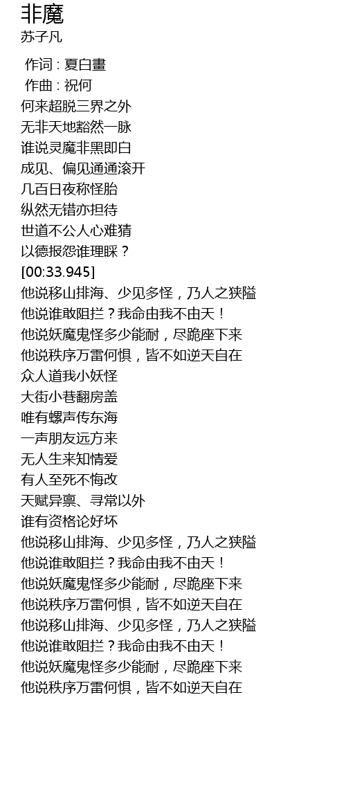 | [00:18.204] | shuí shuō líng mó fēi hēi jí bái |