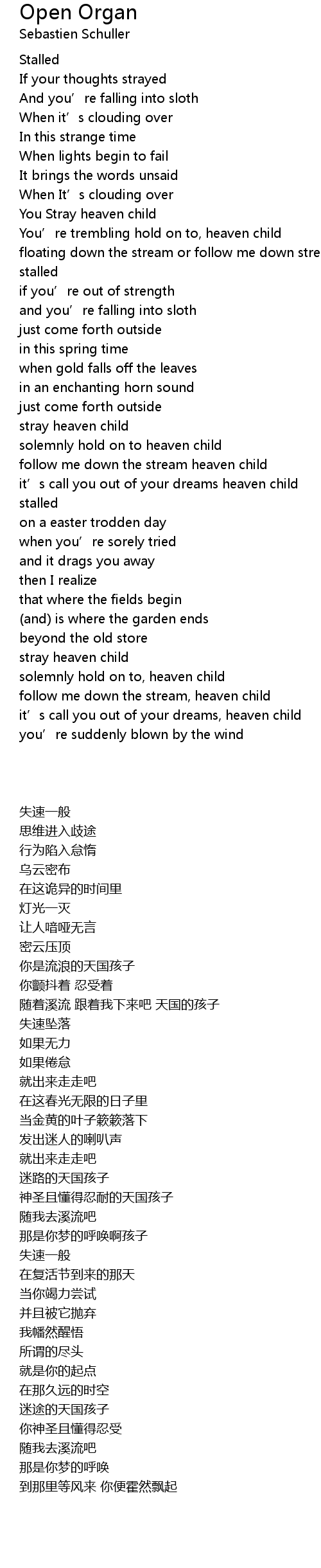 | [01:10.90] | floating down the stream or follow me down stream, heaven child |