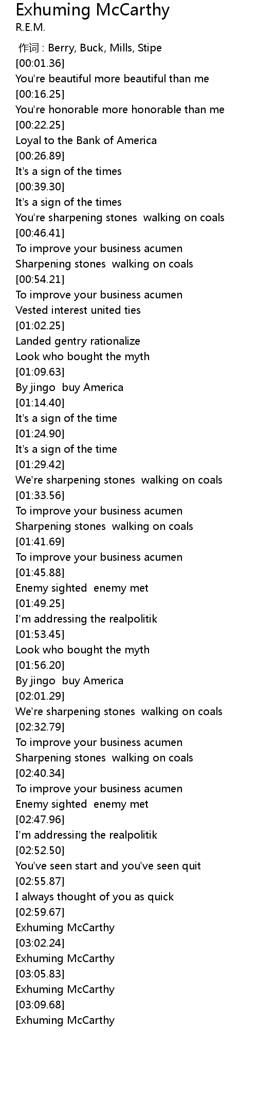 | [00:00.00] | zuò cí : Berry, Buck, Mills, Stipe |