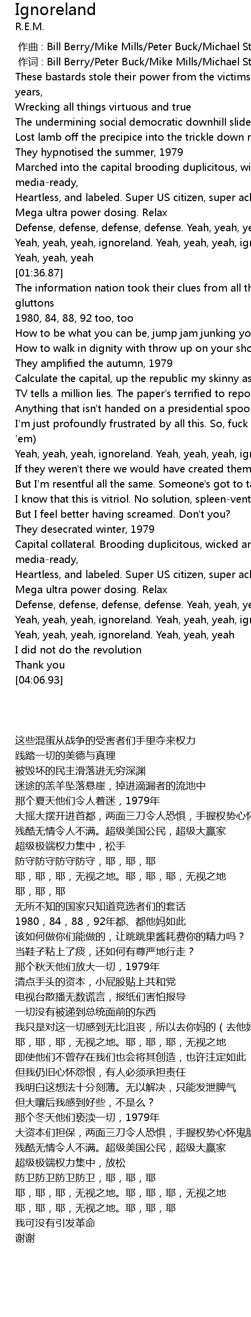 | [03:56.76] | Yeah, yeah, yeah, ignoreland. Yeah, yeah, yeah |