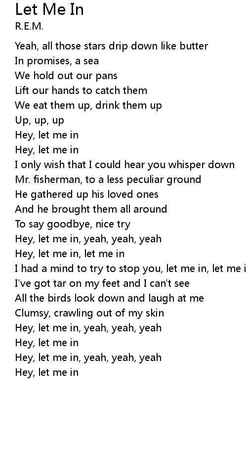 | Hey, let me in, let me in | |
