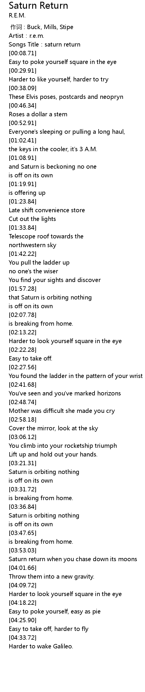 | [03:54.84] | Saturn return when you chase down its moons |