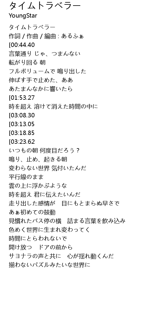 | [00:52.22][01:53.27] | だって タイムトリッパー |