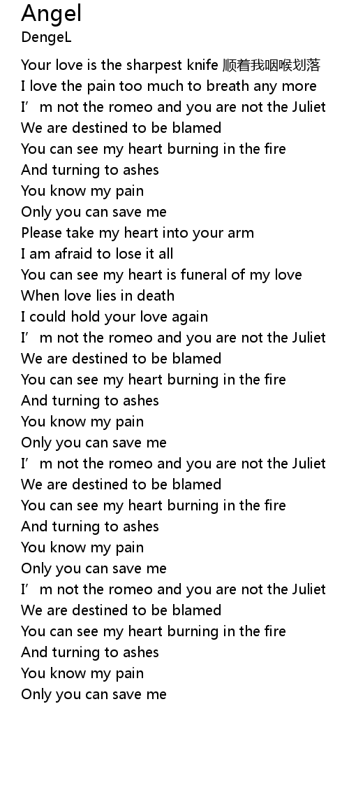 | [00:05.63] | Your love is the sharpest knife shùn zhe wǒ yān hóu huà luò |