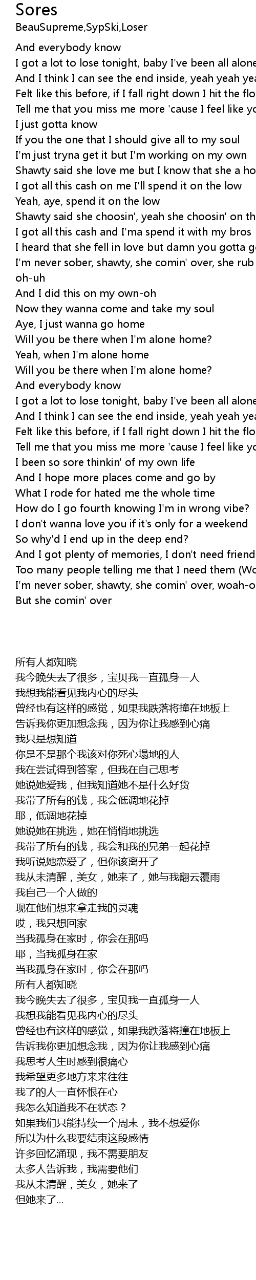 Tell me that you miss me more 'cause I feel like you just get me sore |