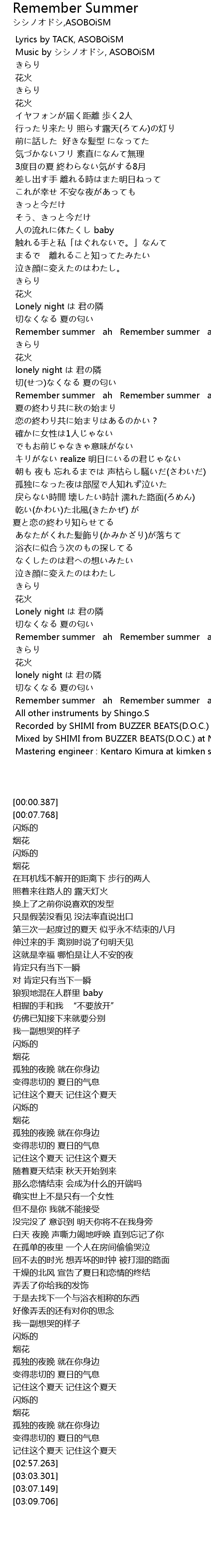 | [02:37.631] | Remember summer ah Remember summer ah |