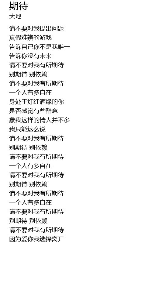 | [01:38.880] | qǐng bú yào duì wǒ yǒu suǒ qī dài |