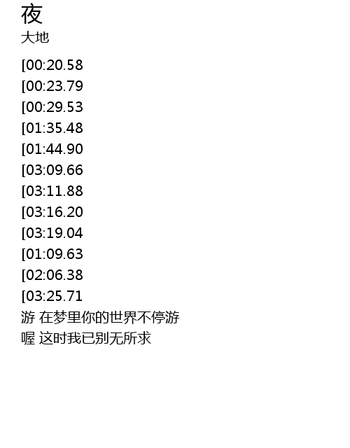 | [01:17.18] | 游 在梦里你的世界不停游 |