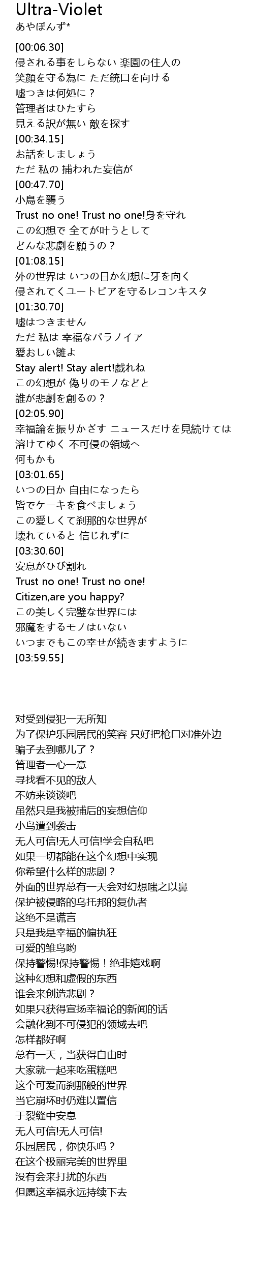 | [03:34.50] | Trust no one! Trust no one! |