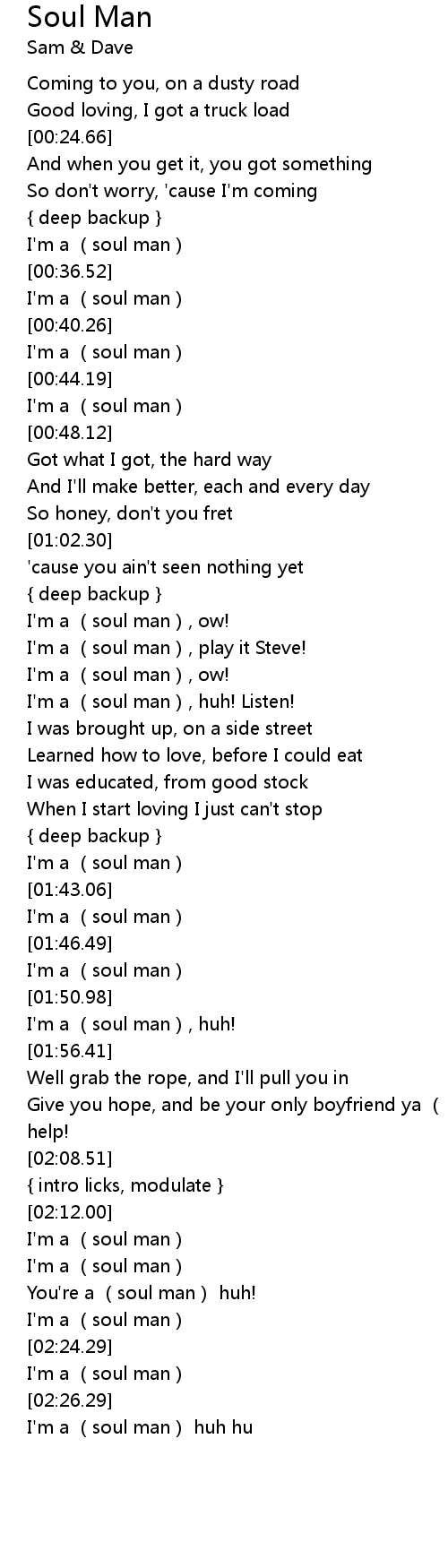 | [02:22.36] | I' m a soul man |