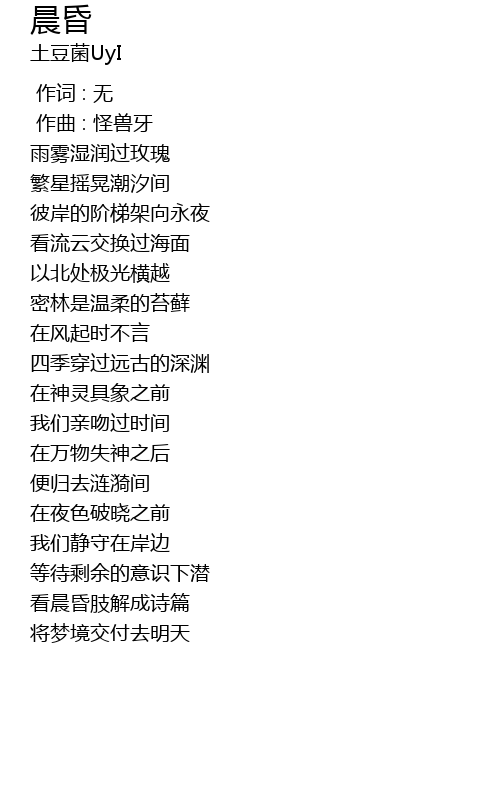 | [00:01.00] | 作曲 : 怪兽牙 |