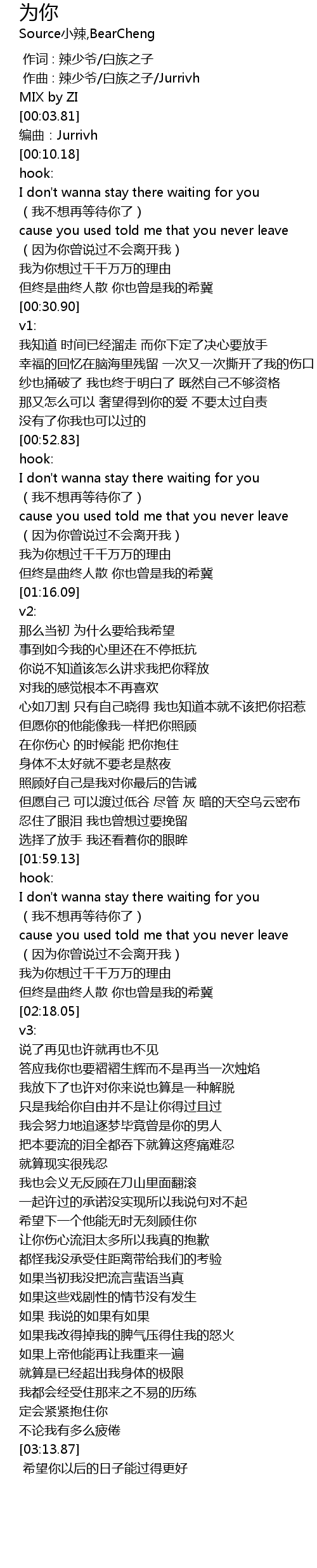 | [00:53.52] | I don't wanna stay there waiting for you |