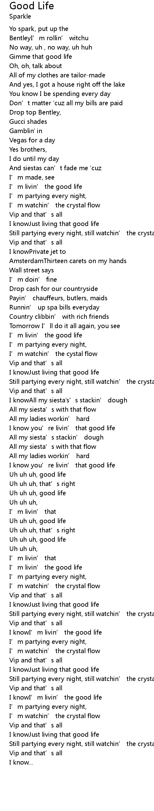 | Uh uh uh, good life | |
