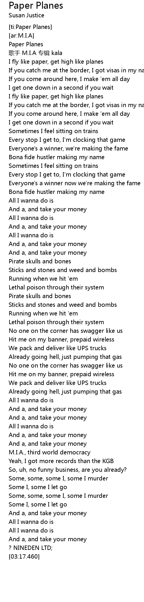 | [ti:Paper Planes] | |