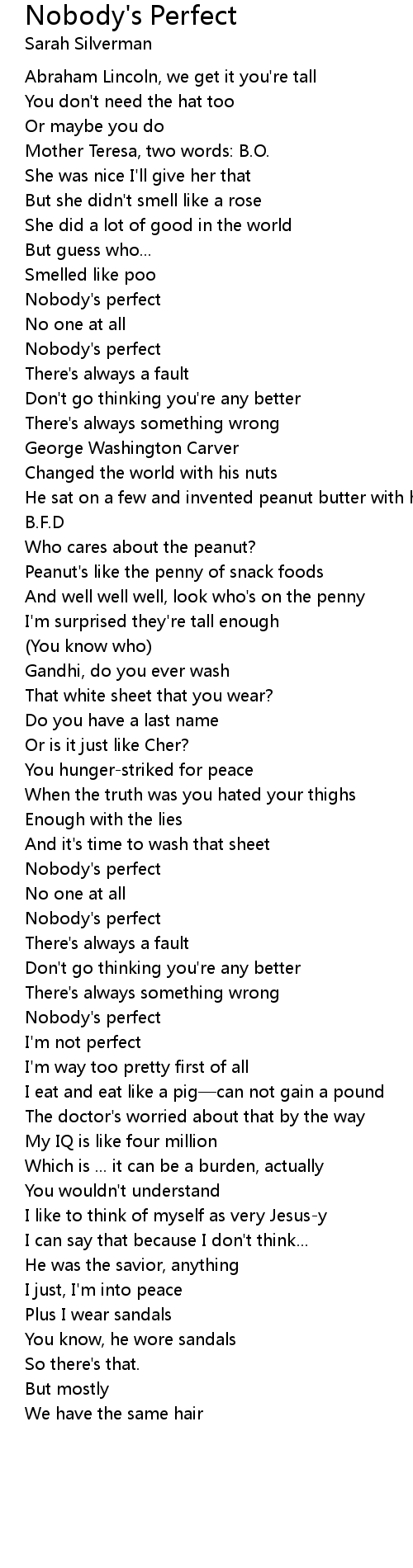 | Nobody' s perfect | |