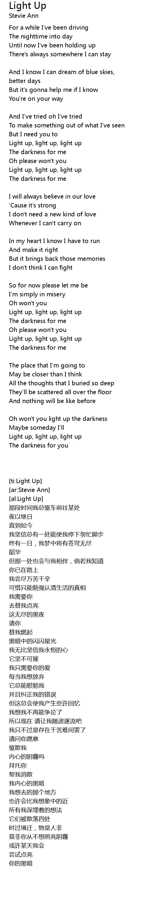 Oh won't you light up the darkness |